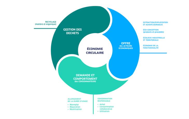 L’économie circulaire consiste à produire des biens et des services de manière durable en limitant la consommation et le gaspillage des ressources et la production des déchets. Il s’agit de passer d’une société du tout jetable à un modèle économique plus circulaire. L’ADEME la définit comme un système économique d’échange et de production qui, à tous les stades du cycle de vie des produits, vise à augmenter l’efficacité de l’utilisation des ressources et à diminuer l’impact sur l’environnement tout en développant le bien être des individus*.